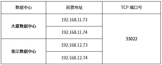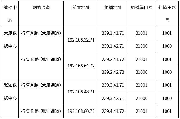 各单位的交易及行情系统应使用FENS配置方式来获取前置机IP地址,FENS服务器的IP地址为:192.168.12.41、192.168.12.42、192.168.11.31、192.168.11.32、192.168.16.31、192.168.16.32。