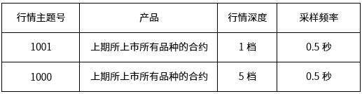 上期所的一档行情主题号为1001,发布频率为每秒2笔。