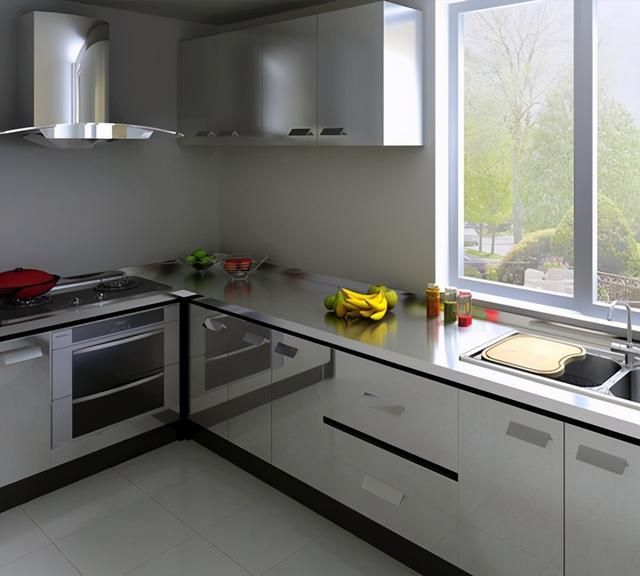 不锈钢台面最大的优点就是好清理,台面沾上油渍也无需担心,轻轻松松即可去除。不锈钢材质光洁明亮,也有良好的耐腐蚀性。此外,不锈钢台面是一体的,中间没有缝隙,所以也不必担心会有渗漏。