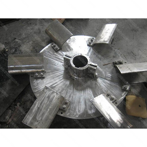 该产品由于其叶片结构复杂,一般采用铸造方式。对于锻造的零件要进行焊接就需要锻造模具和焊接夹具、加工较困难。搅拌器可用轴套以平键(或紧固螺钉)与轴固定也可采用胀套联接。安装在反应釜的上部的桨叶把液体或气体往下压;安装在下部的桨叶把液体往上推。因此两个桨叶的安装方向正好相反且搅拌时能使物料在反应釜内循环流动,所起作用以容积循环为主、剪切作用较小且上下翻腾效果良好,一般采用铸铁、铸钢的搅拌器。