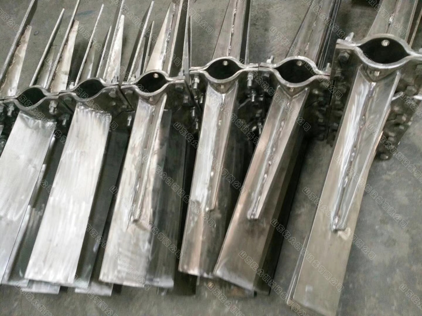 该设备是用竖直的桨叶将水平的桨叶一体成为刚性的框子,因此强度比较高、搅动物料量大。锚式搅拌器可看作桨式搅拌器的变形,其底部形状和反应釜下的封头形状相似。锚式搅拌器的结构可以是用扁钢或角钢弯制成,底部的形状好,所有零件之间全部焊接;另一种是做成可装卸式的形式,各搅拌叶之间用螺栓联接起来,这样拆卸比较方便。特殊情况下可采用整体锻造或管材焊接,如铸铁搅拌器和搪玻璃搅拌器。