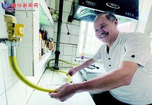 6月30日,记者来到奎文区东关街道苇湾社区宋利华家里,他家刚刚将燃气软管更换成了不锈钢波纹管。苇湾社区是一个老旧小区,老年居民不少,之前使用燃气软管,存在一定的安全隐患。
