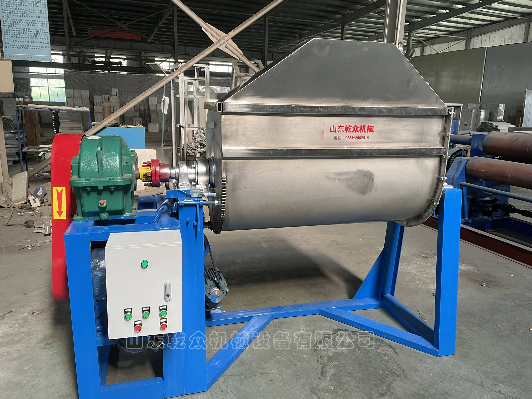 1、该机为卧式筒体,螺旋带具有独特的结构,运转平稳、质量可靠、噪音低,使用寿命长,安装维修方便,并有多种搅拌器结构,用途广泛的多功能混合设备;